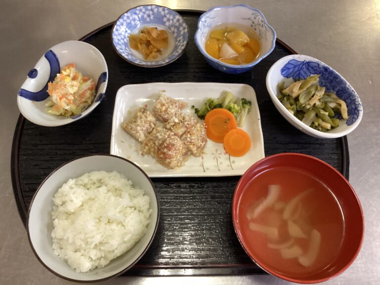 2025年9月22日 今日の昼食 デイサービスセンターわらべが9月22日に提供した昼食です。メニュー/白ご飯 鶏肉のパン粉焼き コールスローサラダ インゲンの炒め煮 コンソメスープ フルーツミックス 続きを読む