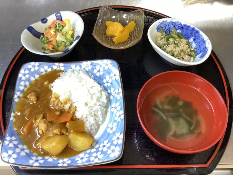 2025年10月17日 今日の昼食 デイサービスセンターわらべが10月17日に提供した昼食です。メニュー/チキンカレー ブロッコリーのサラダ いんげんとツナの卵炒め コンソメスープ みかん缶 続きを読む